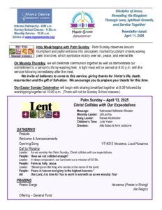Informal Worship: 9:00 – 9:30 a.m